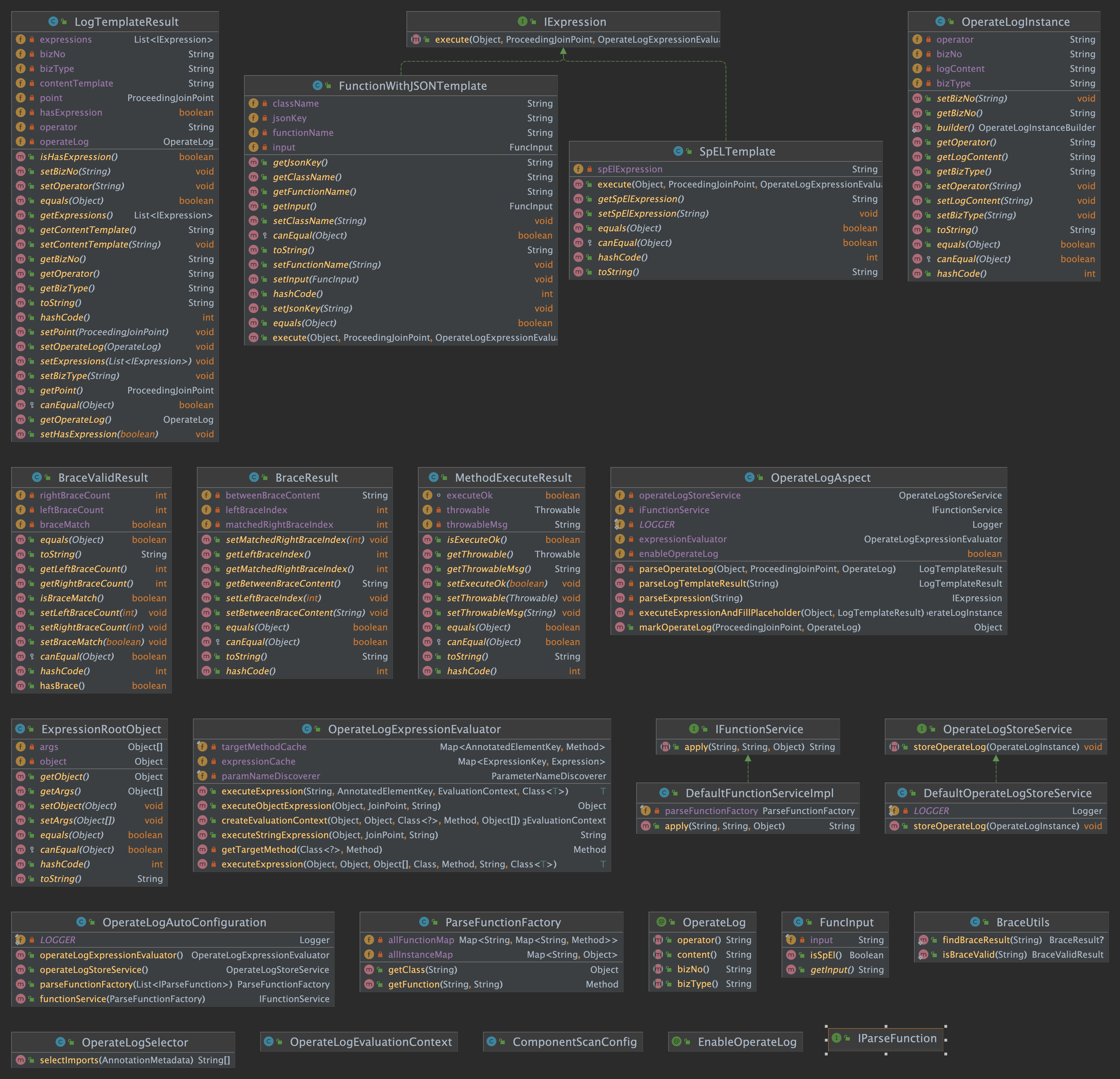 | private LogTemplateResult parseOperateLog(Object result,ProceedingJoinPoint point, OperateLog operateLog) {